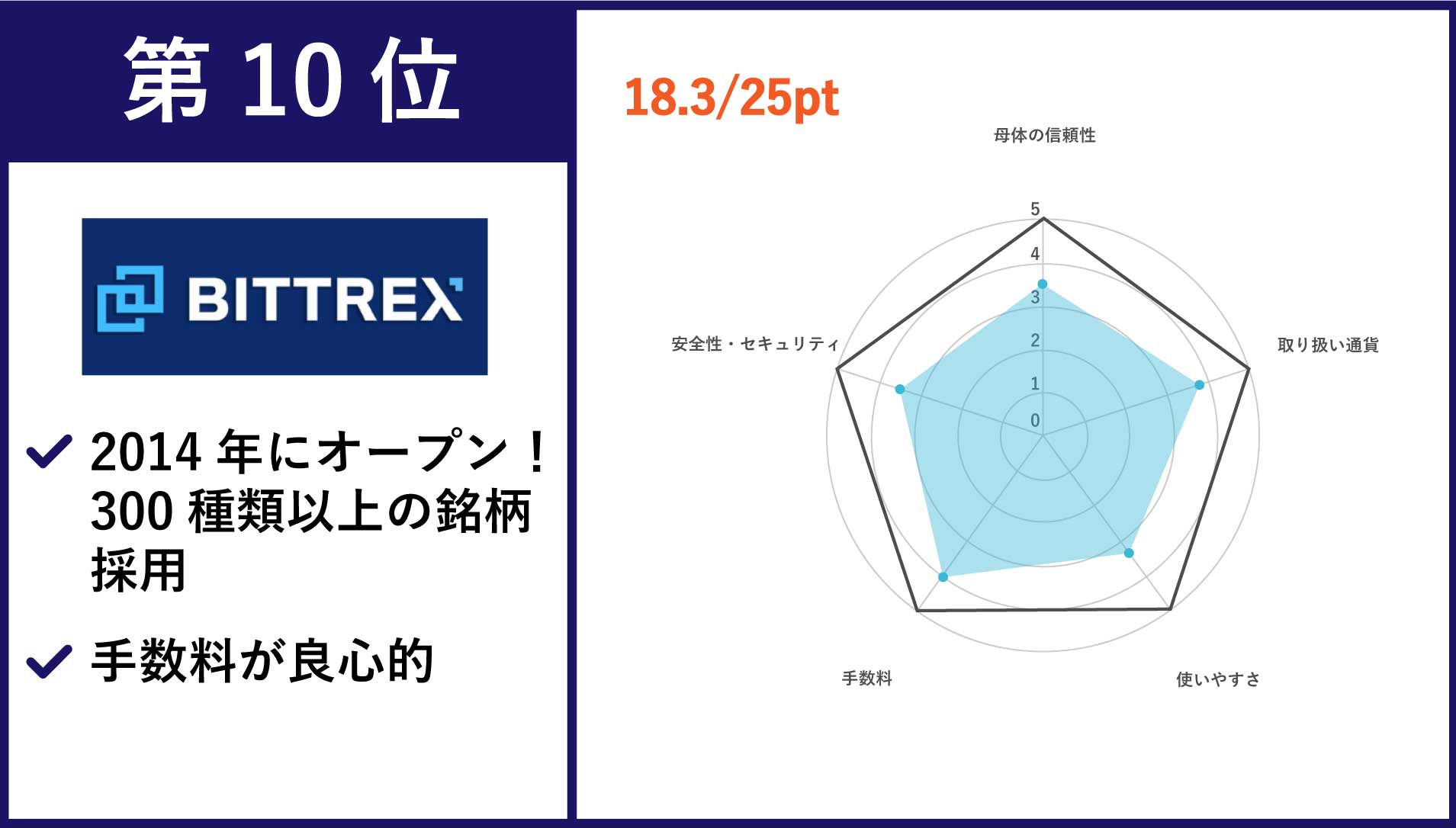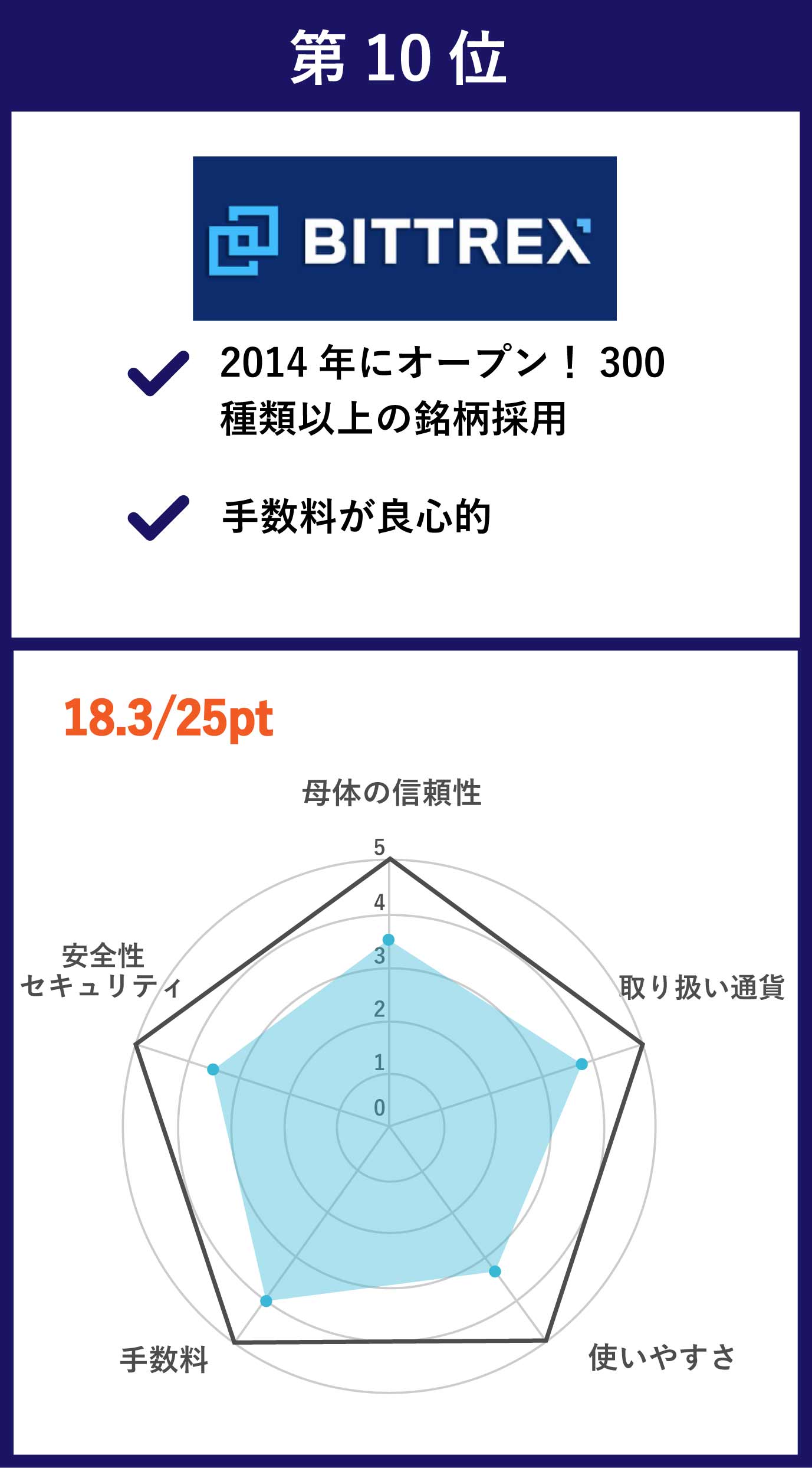 | 第10位 BITTREX | マイナーコインを中心とした300種類以上の銘柄数 | 0.1% | あり |