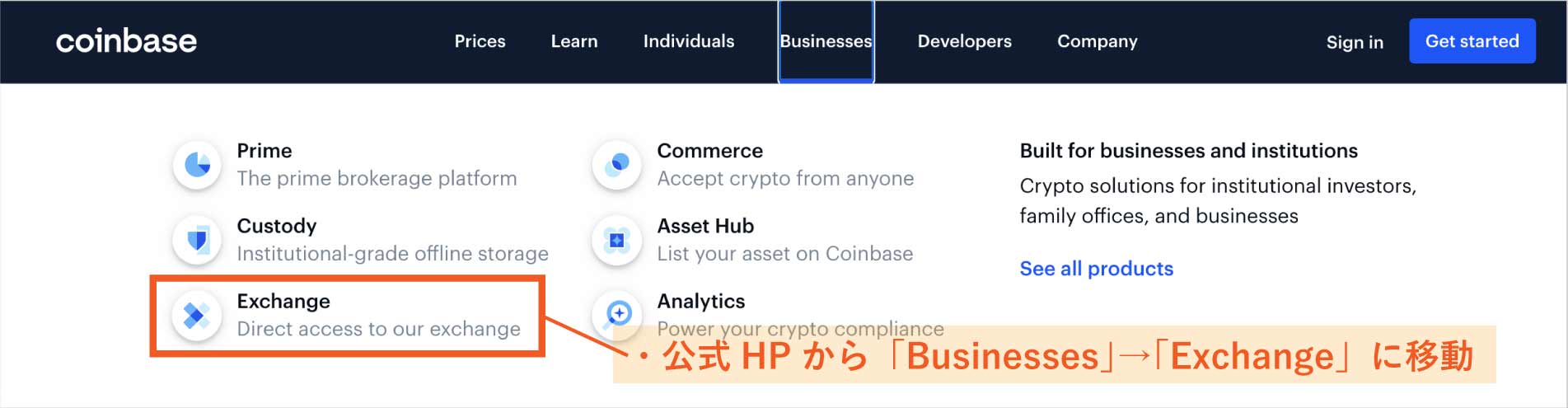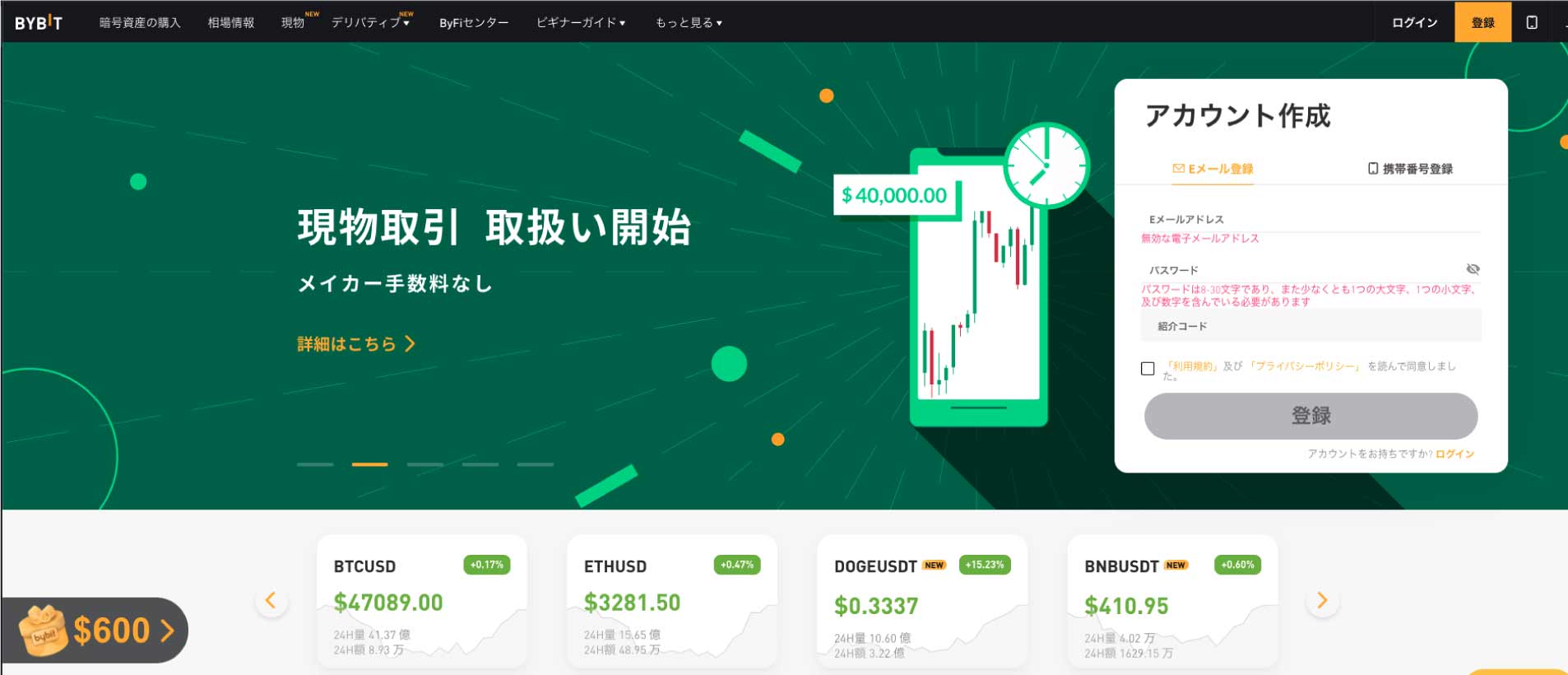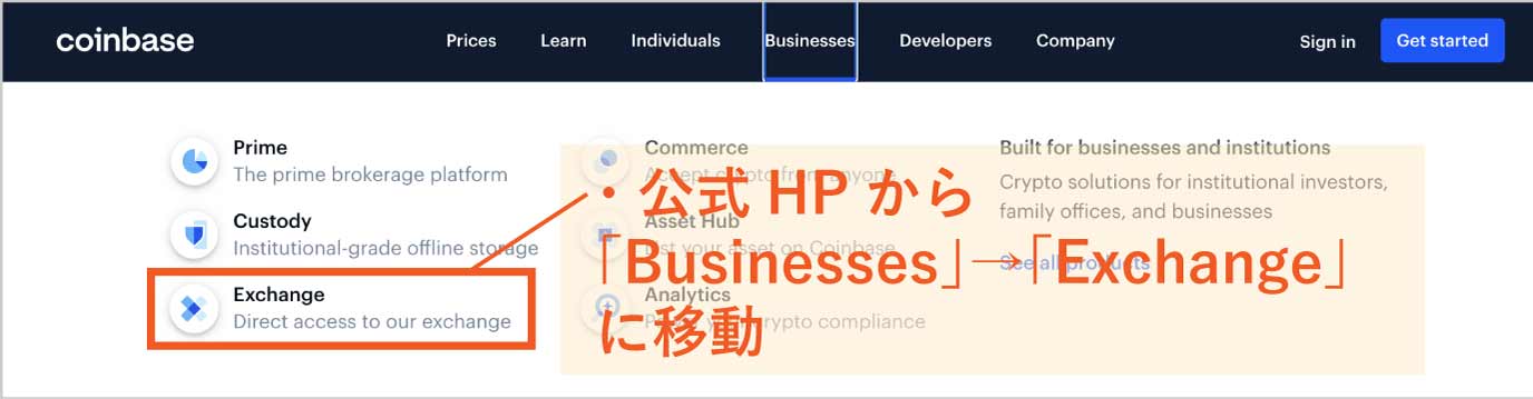 取引所にアクセスしたら、「口座開設のページ」に進みます。