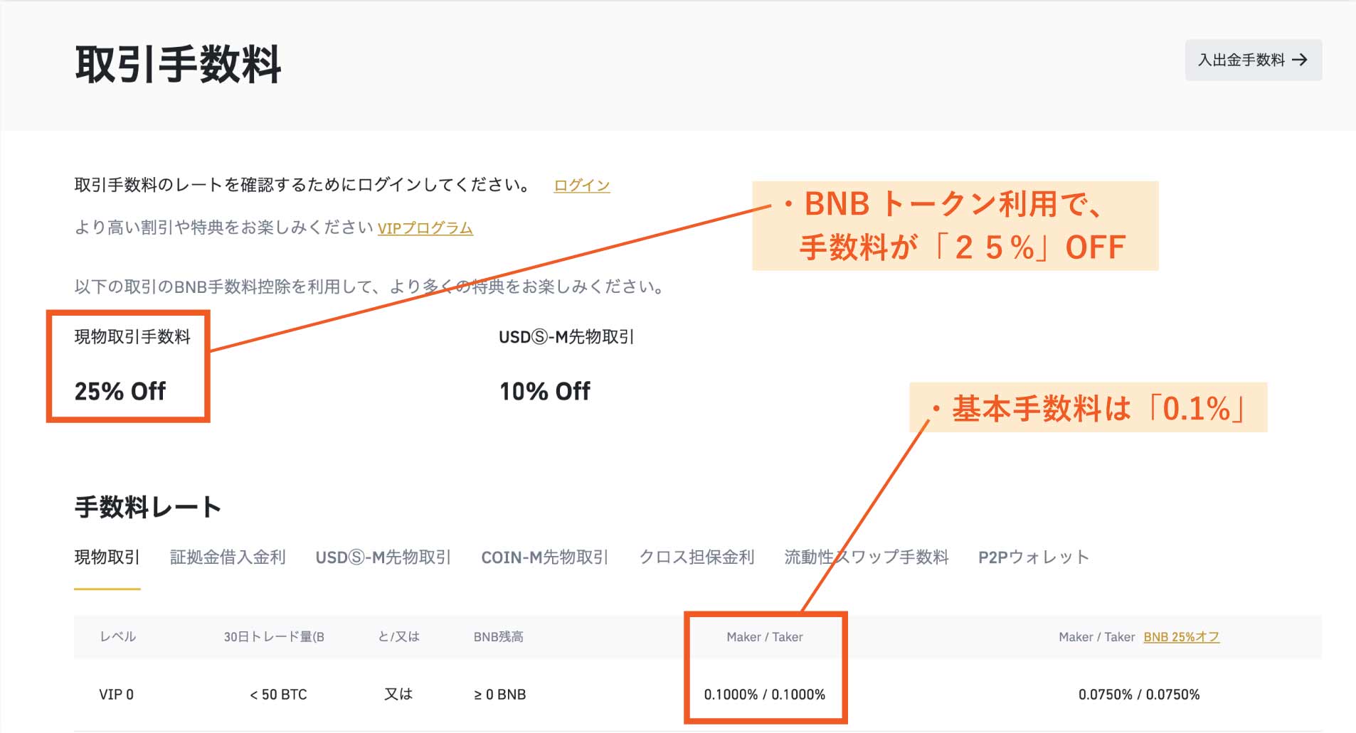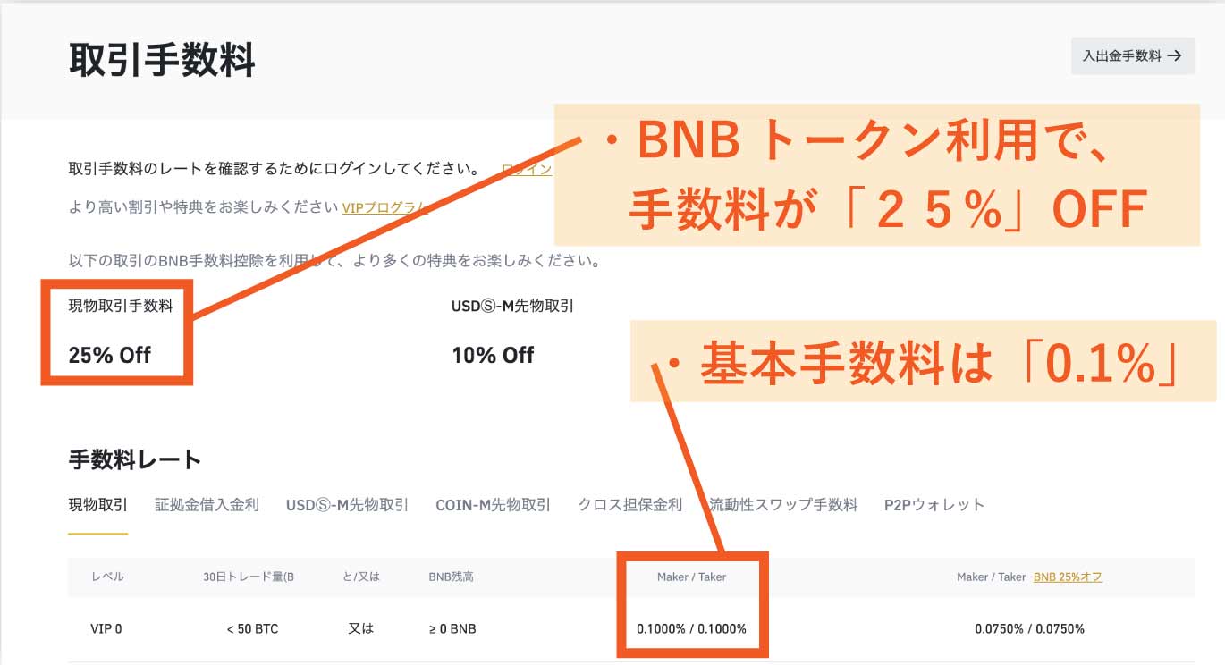 ただし、独自トークンである「BNB」を活用すれば、より安価な手数料もできます。