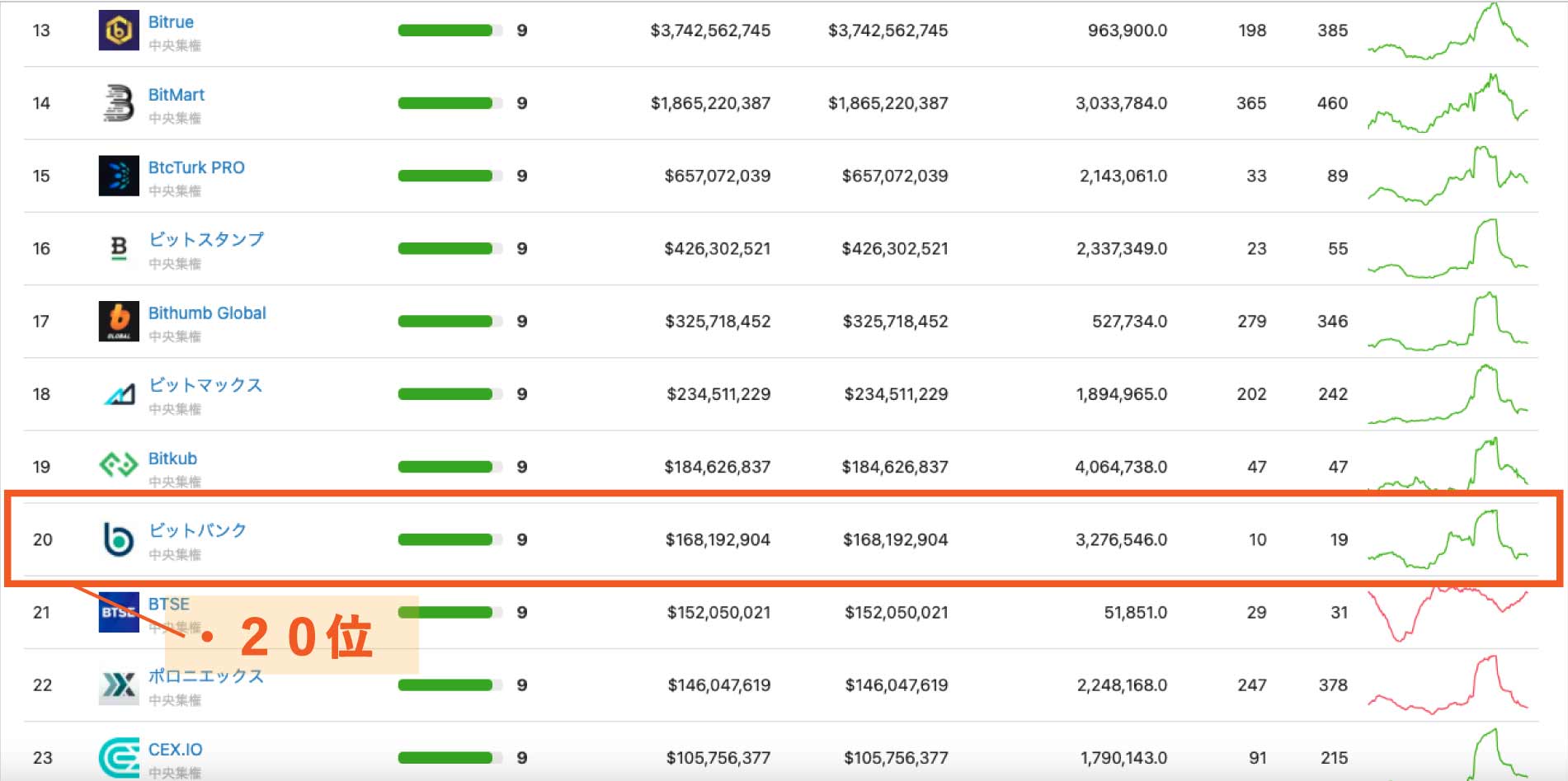他方、日本の取引所では「ビットバンク」が20位にランクイン。