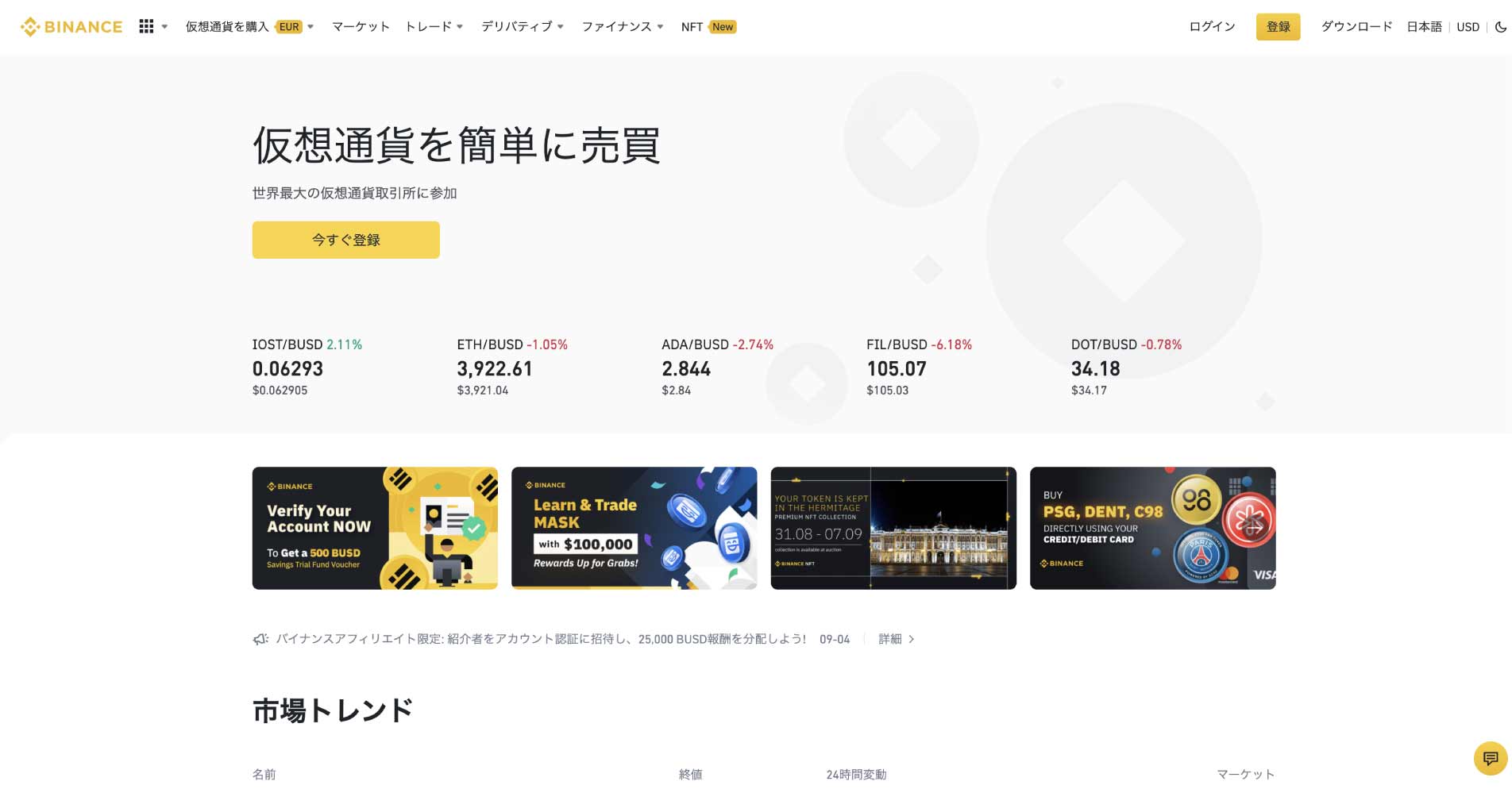 | 仮想通貨取引所名 | Binance |
