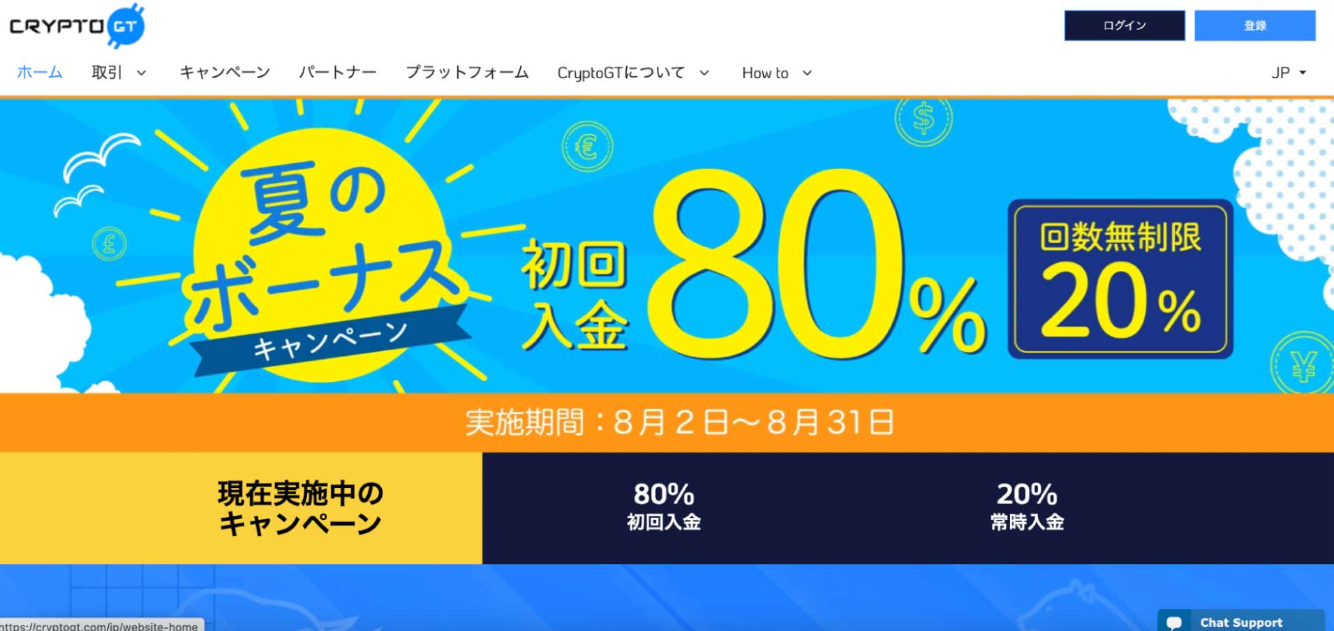 入出金は無料かつ、日本語ページでの分かりやすい操作性やチャットでの質問機能、追証なしでの最大レバレッジ100倍の取引も行えます。