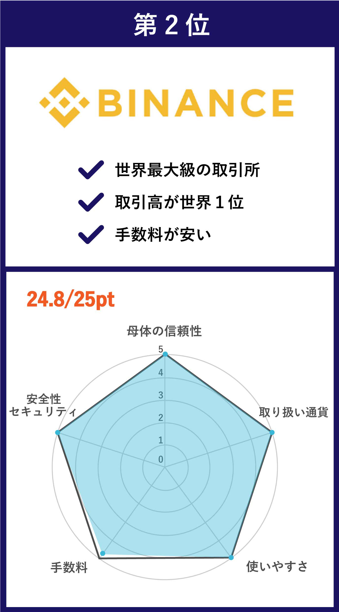 ユーザー同士での安定した売買が行えるため、運営側のBinanceも安価な取引コストでビジネスが成り立っています。